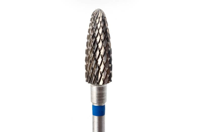 Wysokiej jakości frez z węglika spiekanego ze spiralnym nacięciem krzyżowym służy do szybkiego usuwania cienkich warstw żelu, akrylu, hybrydy.