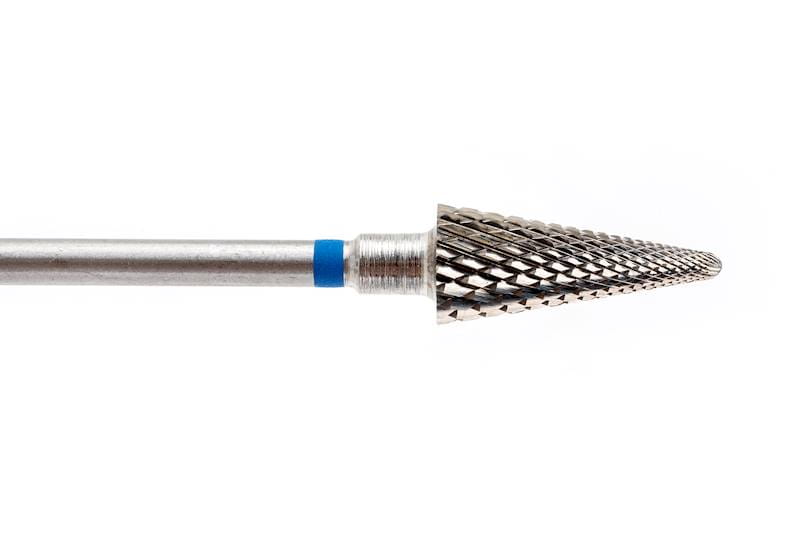 Wysokiej jakości frez z węglika spiekanego ze spiralnym nacięciem krzyżowym służy do szybkiego usuwania cienkich warstw żelu, akrylu, hybrydy.